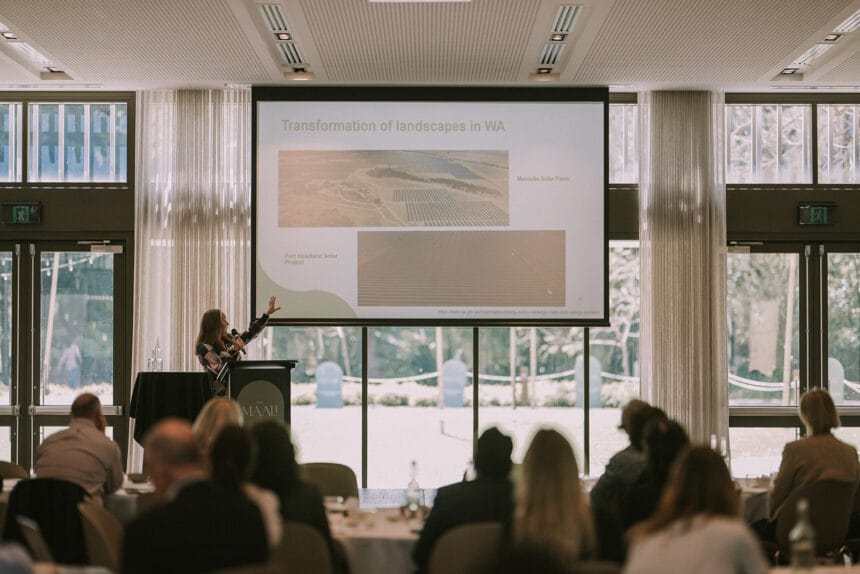Dr Caitlin Moore (The University of Western Australia) provides an overview of the Agrivoltaics project at the WAARC Showcase 2025 in Perth.